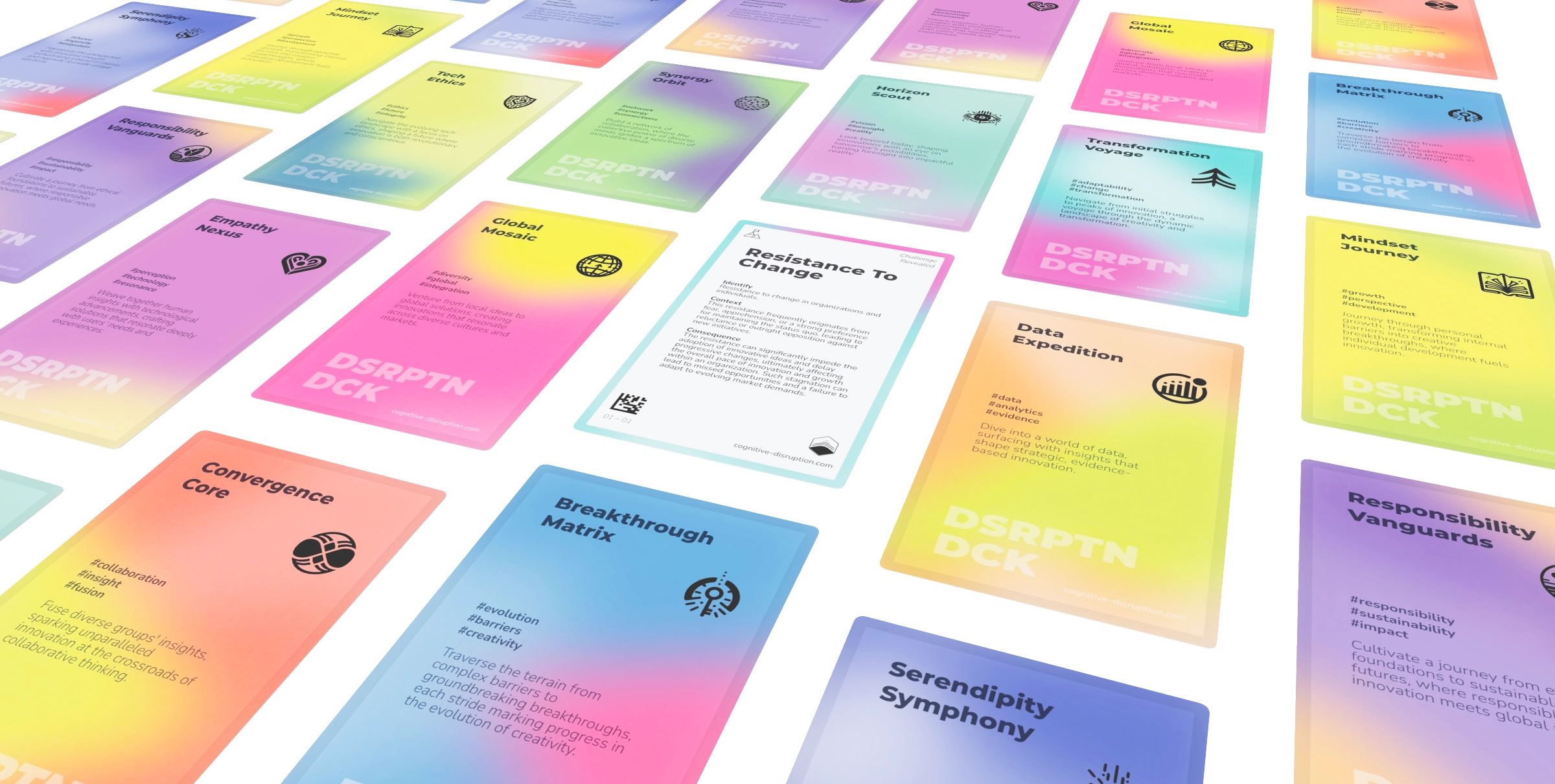 The dsrptn dck is a physical card set and a digital practice for teams that keep running the same sessions — and wondering why momentum never sticks.